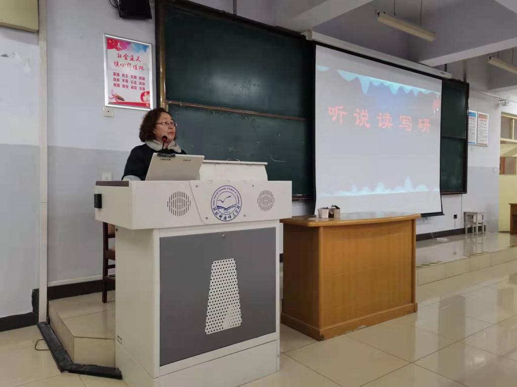 2021年12月16日下午,BEAT365英国官网在综合楼312召开了“提升教师专业素养和教学能力”的专题讲座,此次讲座是BEAT365“名师大讲堂”的系列讲座之四。特邀主讲人为秦皇岛市第二中学高级教师齐春霞老师,齐老师是英语专业2019级的校外导师,海港区初中英语名师工作室主持人。