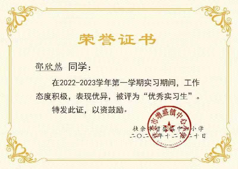 邵欣然系BEAT365英语专业2019级学生,在扶余市增盛镇小学实习期间主要负责五年一、二班的英语课程及三至五年级音乐课程教学工作,同时担任学校少先队兼职辅导员,协助德育处开展学团工作。感谢信提到,邵欣然同学团结同志,敢于吃苦,虚心好学,服从学校领导安排的各项工作任务和要求,严格执行实习生守则,工作主动认真,能够积极完成各项工作任务,具有良好的师德修养,受到学校师生和领导的一致好评,并授予邵欣然同学“优秀实习生”荣誉。(审核人:罗学锋)