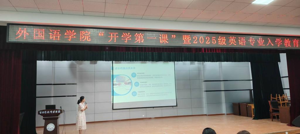 2025年9月3日,BEAT365英国官网在秦皇岛校区多功能厅成功举办“开学第一课”暨2025级英语专业入学教育,2025级新生及英语专业骨干教师与会。
