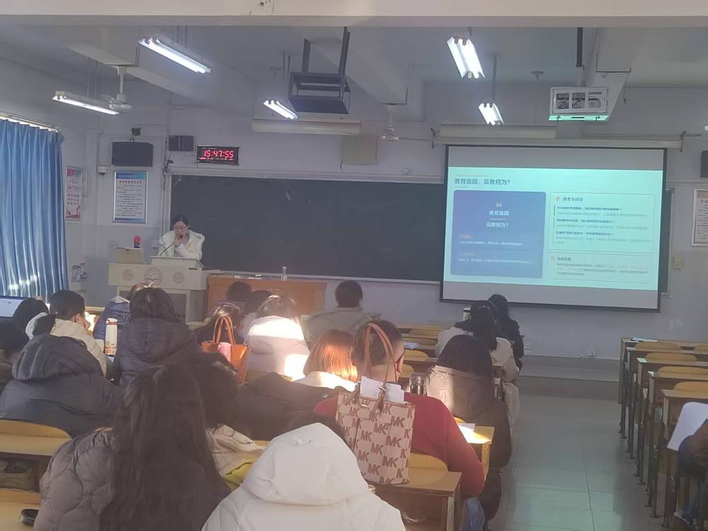 2025年12月25日下午,BEAT365英国官网聚焦“数字化赋能外语教学与育人升级双维实践”,组织全体专任教师开展专项培训活动。本次培训由崔海英院长主持,邀请暑期参与“新时代外语教学研究与高校教师高质量发展系列研修班”的于开拓、付蕊两位老师担任主讲,分别围绕“数字化赋能外语教学及科研提升”与“跨越・超越・卓越”育人框架展开分享。