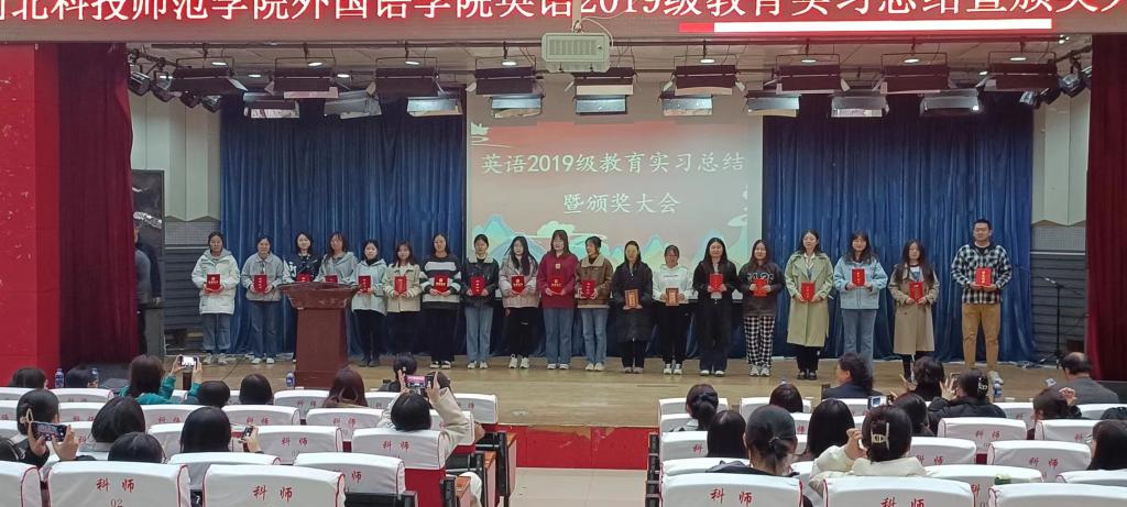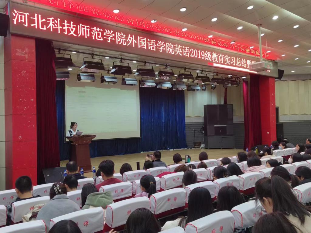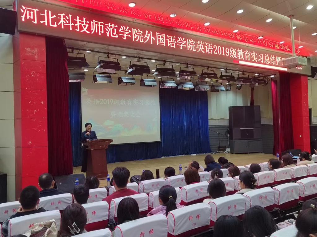 2023年3月17日下午14点,BEAT365英国官网在开发区学术报告厅召开了2019级英语专业教育实习总结暨表彰大会。出席大会的有学校督导组白继海、李广臣二位老师,学院领导班子成员、英语教学部教师和学工办的全体教师、2019级英语专业学生以及部分下学期要开始实习的2020级学生代表。