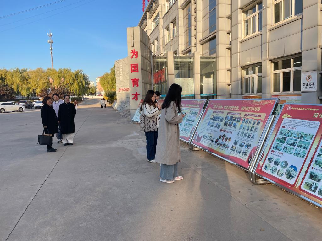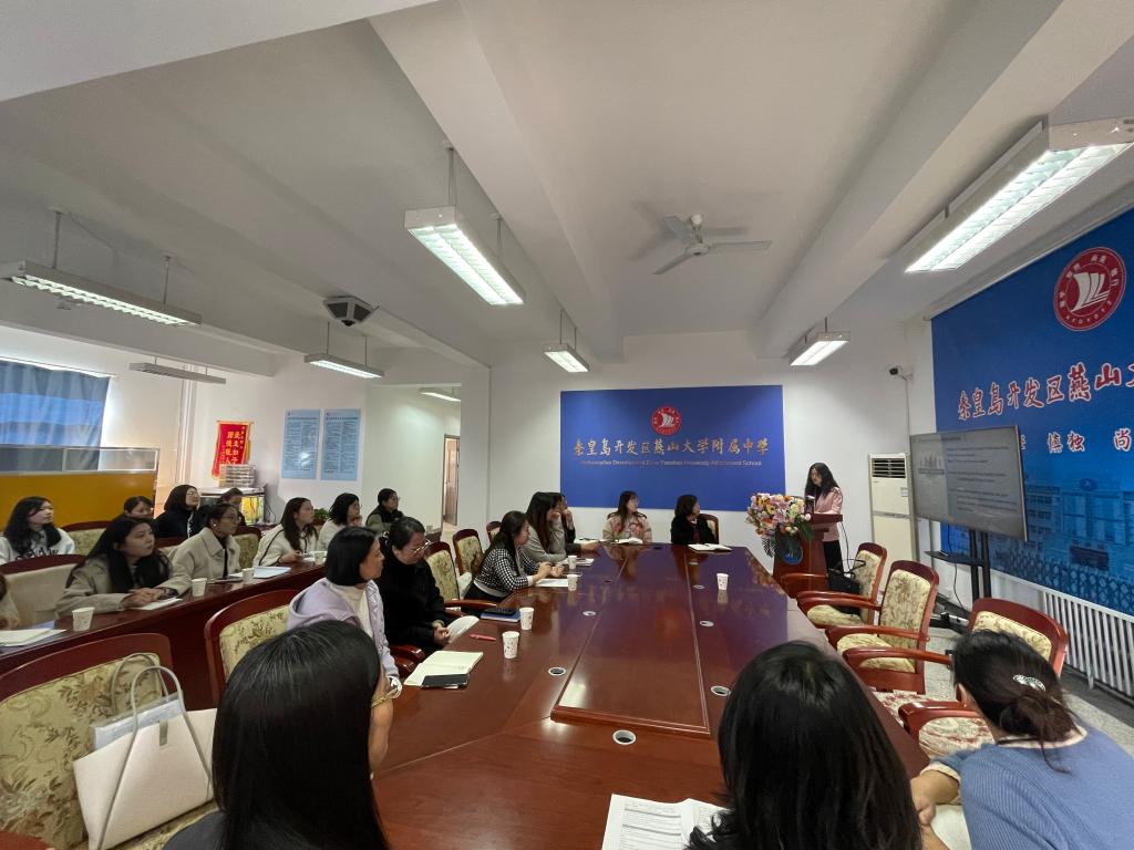 见习团队首先参观了校园及教学楼的文化建设。主教学楼门廊内外展示了附中莘莘学子的风采,敬学楼浮雕门刻着“为中华之崛起而读书”的字样,时刻激励着青年奋进向前。其次,观摩了田宇和刘新颖两位老师的英语公开课。田老师讲授的是高一年级题目为“Living Legends”的英语阅读课,授课过程设计合理各个关节紧密相扣又融合了课程思政理念。刘老师所教的是高二年级的英语课,她结合自己的班主任工作经验呈现了一节高效的知识性互动性相融合的示范课,通过介绍袁隆平“Working the Land”为杂交水稻奉献一生的事迹提升学生用英语讲授中国故事的跨文化交际能力。随后,英语教研组组长陈丽老师组织本校英语教师和见习团队共同进行教研活动,针对授课理念、课堂活动设计、教学环节的安排、作业的设置等展开讨论。在课间,见习团队还观摩了一场别开生面的“律动青春展风采,励志奔跑赢未来— 励志跑操活动”,这不仅是附中学子风采与魅力的展示,更是附中精神风貌与文化底蕴的精彩呈现。