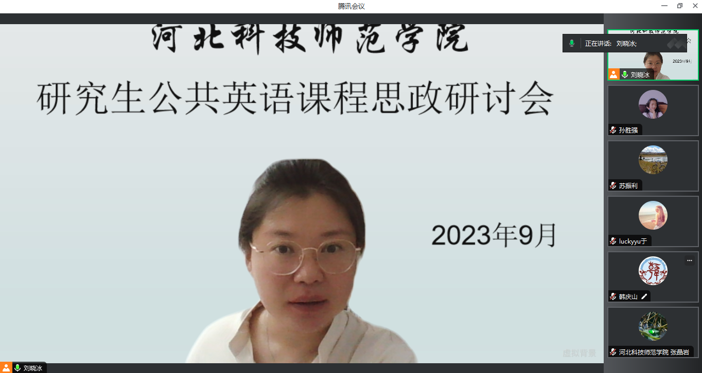 2023年9月8日BEAT365英国官网学科教学(英语)教学部组织硕士研究生公共英语(第一外国语)任课教师开展教学研讨活动,会议主题围绕研究生公共英语课程思政展开,研讨内容包括:针对教材的各个章节选出精讲主题和配套的练习,任课教师可以根据学生的具体专业情况灵活把握课程思政的切入点,可以利用超星学习通教学平台布置英语词汇、小组活动及主题作业等学习任务,并积极开展课程思政。