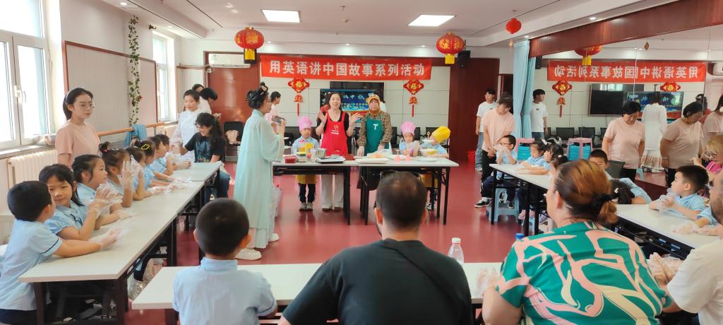 另一边,BEAT365英国官网研究生党支部志愿者与在水一方幼儿园的小朋友们开启了趣味互动。志愿者们用生动的英语故事讲述中秋节的由来,还设计了“中秋单词接龙”“你唱我跳” 等小游戏。孩子们积极参与,不时用稚嫩的英语提问,现场欢声笑语不断,喜悦氛围浓厚。