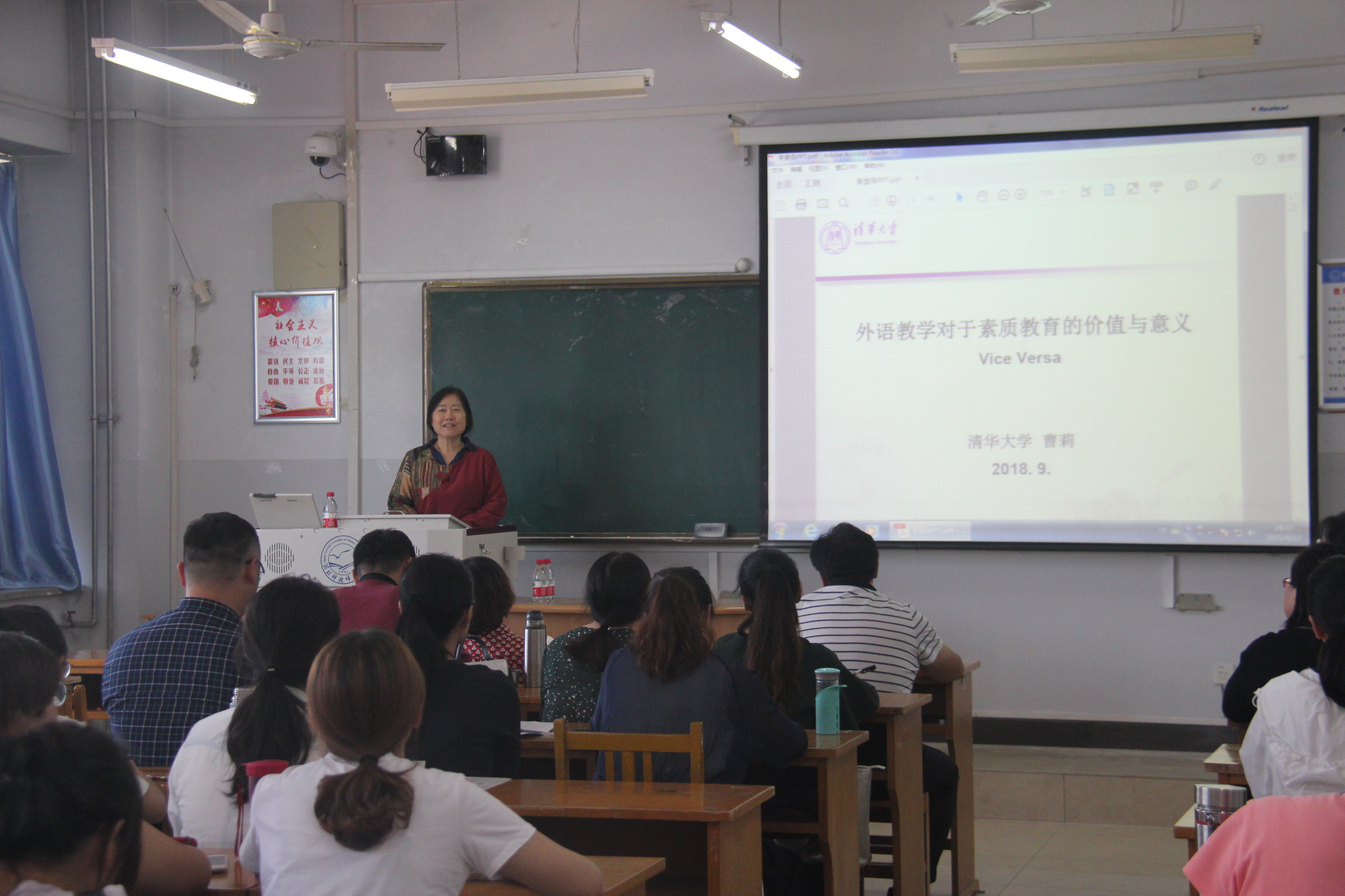 2018年9月21日下午,应BEAT365英国官网邀请,清华大学人文学院欧美文学研究中心主任、清华大学新雅书院副院长曹莉教授作了一场题为“外语教学对于通识教育的价值与意义”的精彩讲座。本次讲座由BEAT365英国官网行政负责同志主持。