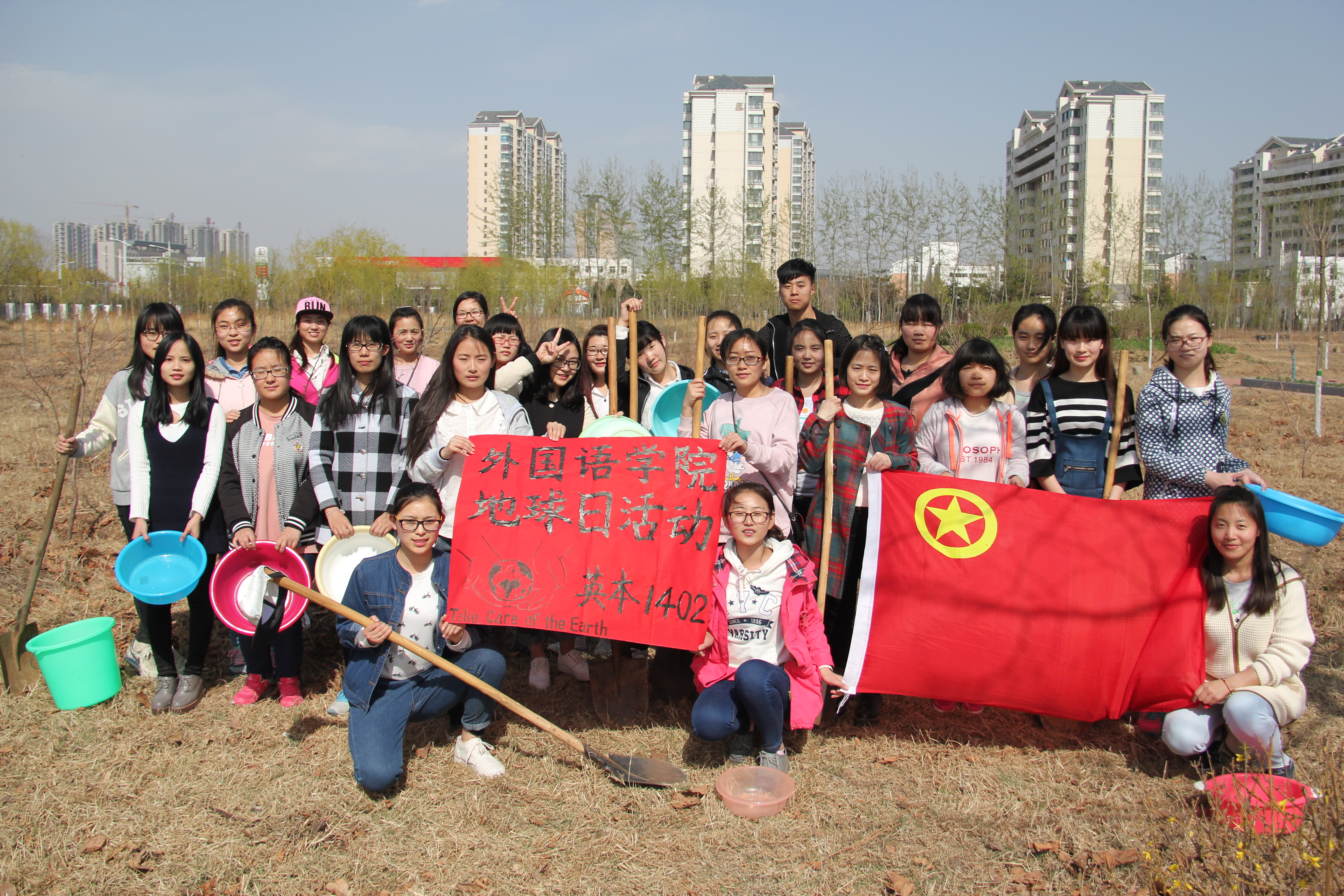 走进自然,亲近自然,爱护地球,在第47个世界地球日来临之际,BEAT365英国官网英本1402班于4月8日下午举行“地球日”主题团日活动,同学们在班团委的带领下到开发区校区内的山楂树林进行护理活动。同学们为山楂树松土、培土,清理了杂草,最后浇水。通过此次活动,希望同学们在今后的生活中能够保护大自然,爱护地球,为实现十三五“绿色方略”建设生态文明社会而努力。