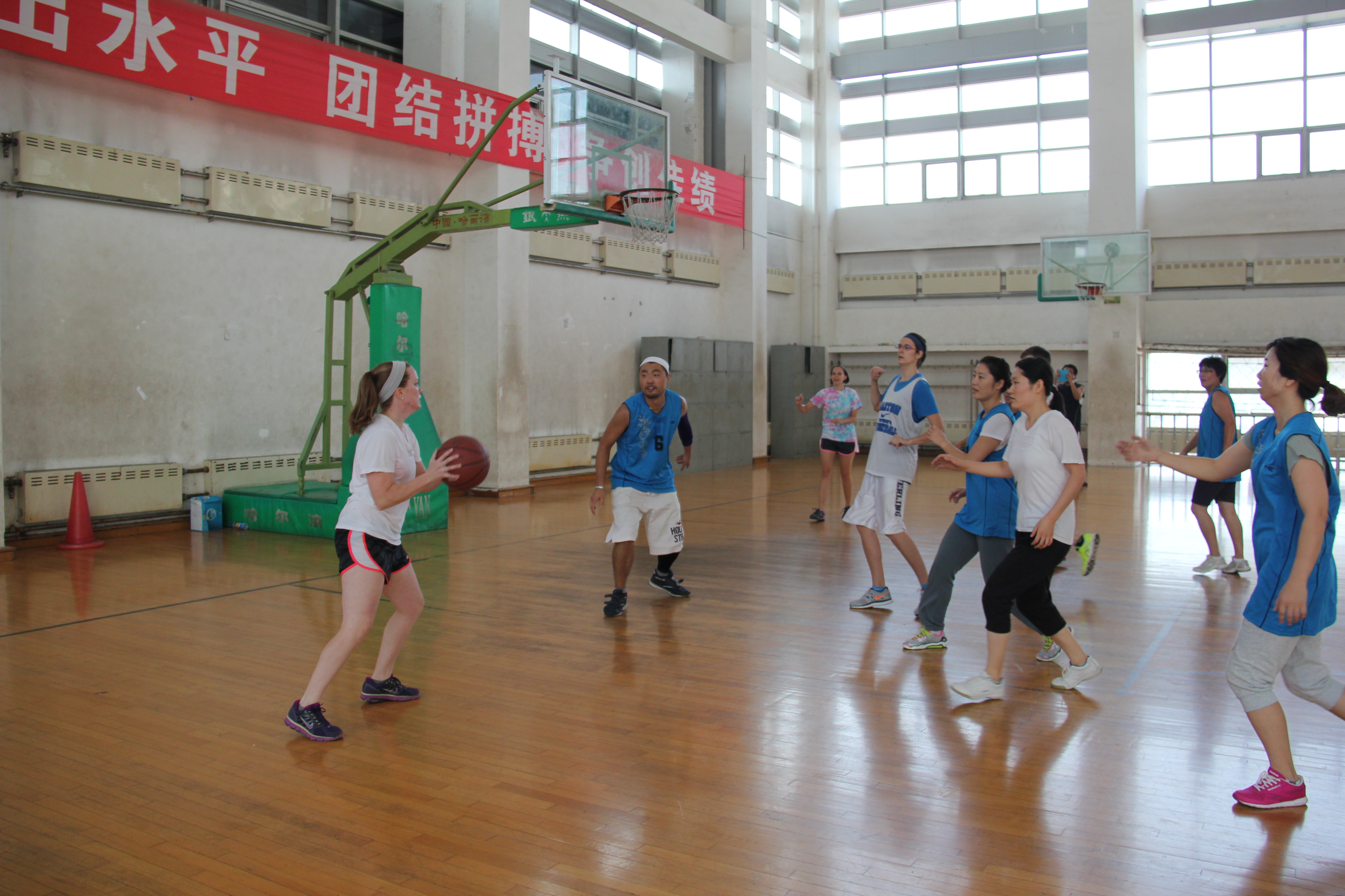 9月13日上午,国际合作与交流处与BEAT365英国官网联合举办了中外教师篮球友谊赛。国际合作与交流处处长东方阳、学生处副处长宋文华、BEAT365英国官网党委书记白雪松、BEAT365英国官网院长邵丽君、四名英语外教及多名教师参加了比赛。
