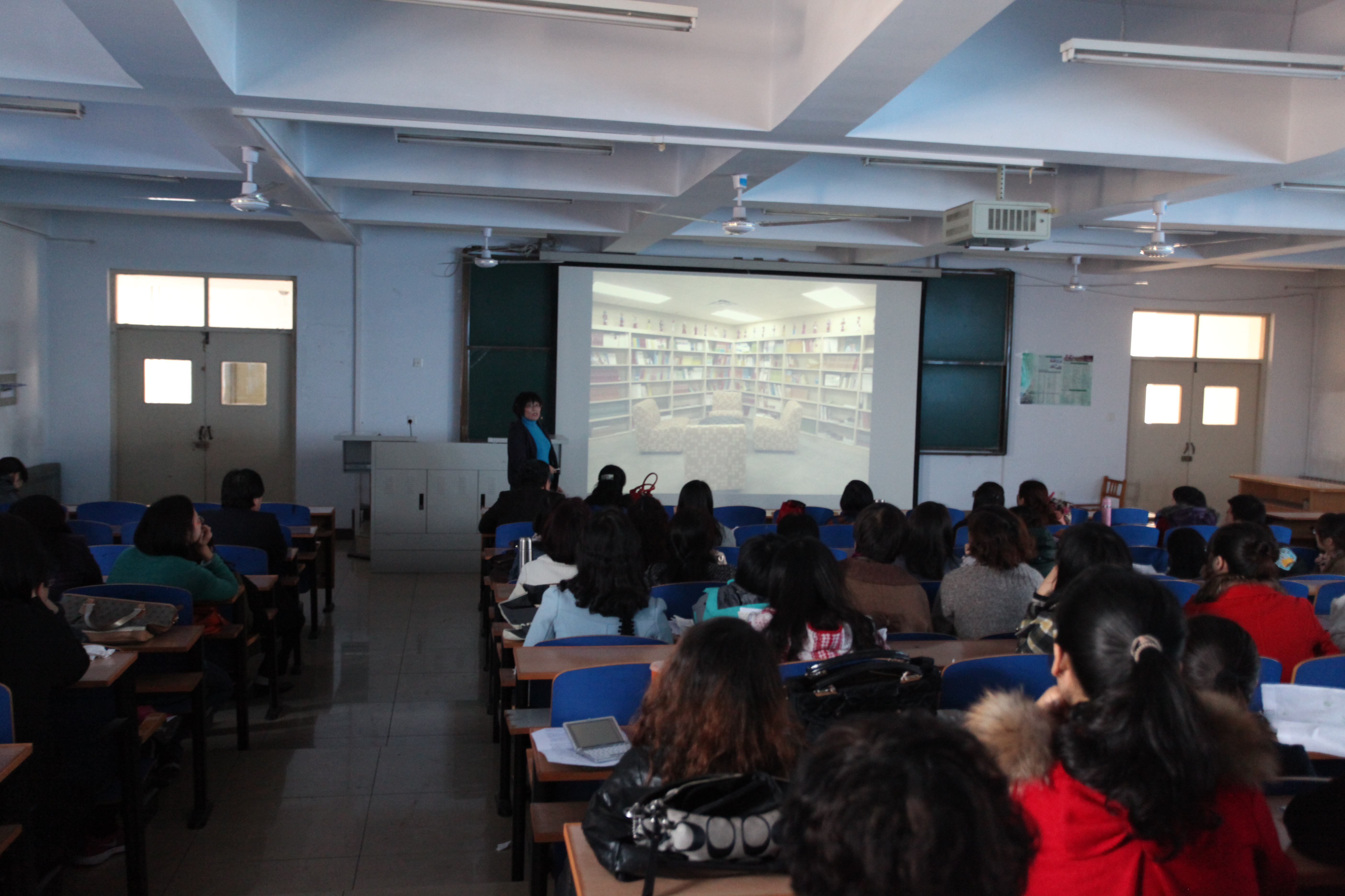 会议由邵丽君院长主持,三位海外归国教师崔海英、裴艳丽、陈谦倩分别做了总结汇报。首先崔海英副院长重点介绍了在美国出访期间的见闻,从特洛伊大学校况到美国的交通及风土人情,并将纽约与我国的上海进行了对比;随后裴艳丽老师以照片的形式介绍了在美国孔子学院工作期间对于美国的所见所闻,从教育、运动到奇思妙想的创意,给在座的老师们描绘了一个真实的美国;最后陈谦倩老师用ppt的形式简单介绍了日本在教学方面和传统文化的传承方面的情况。