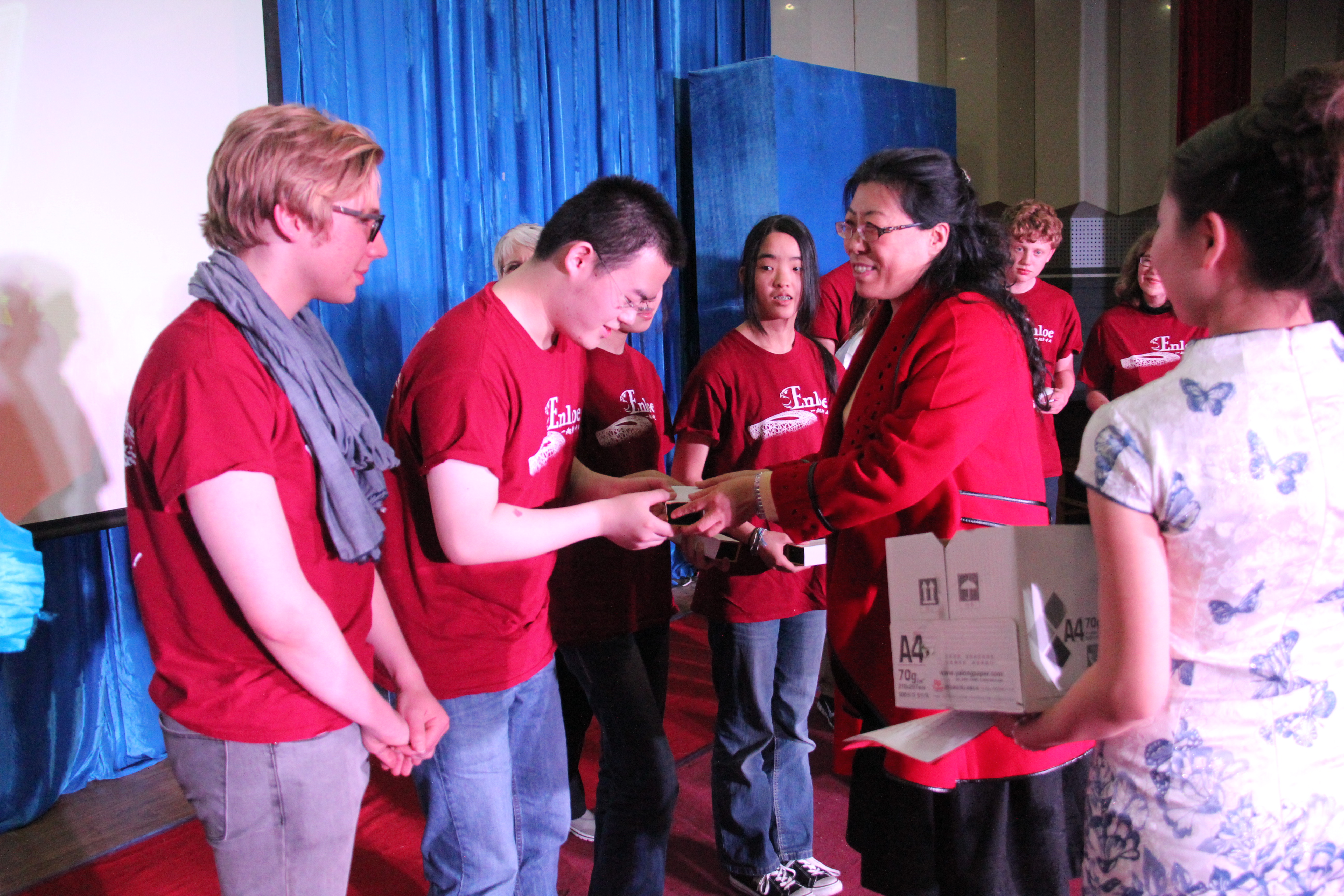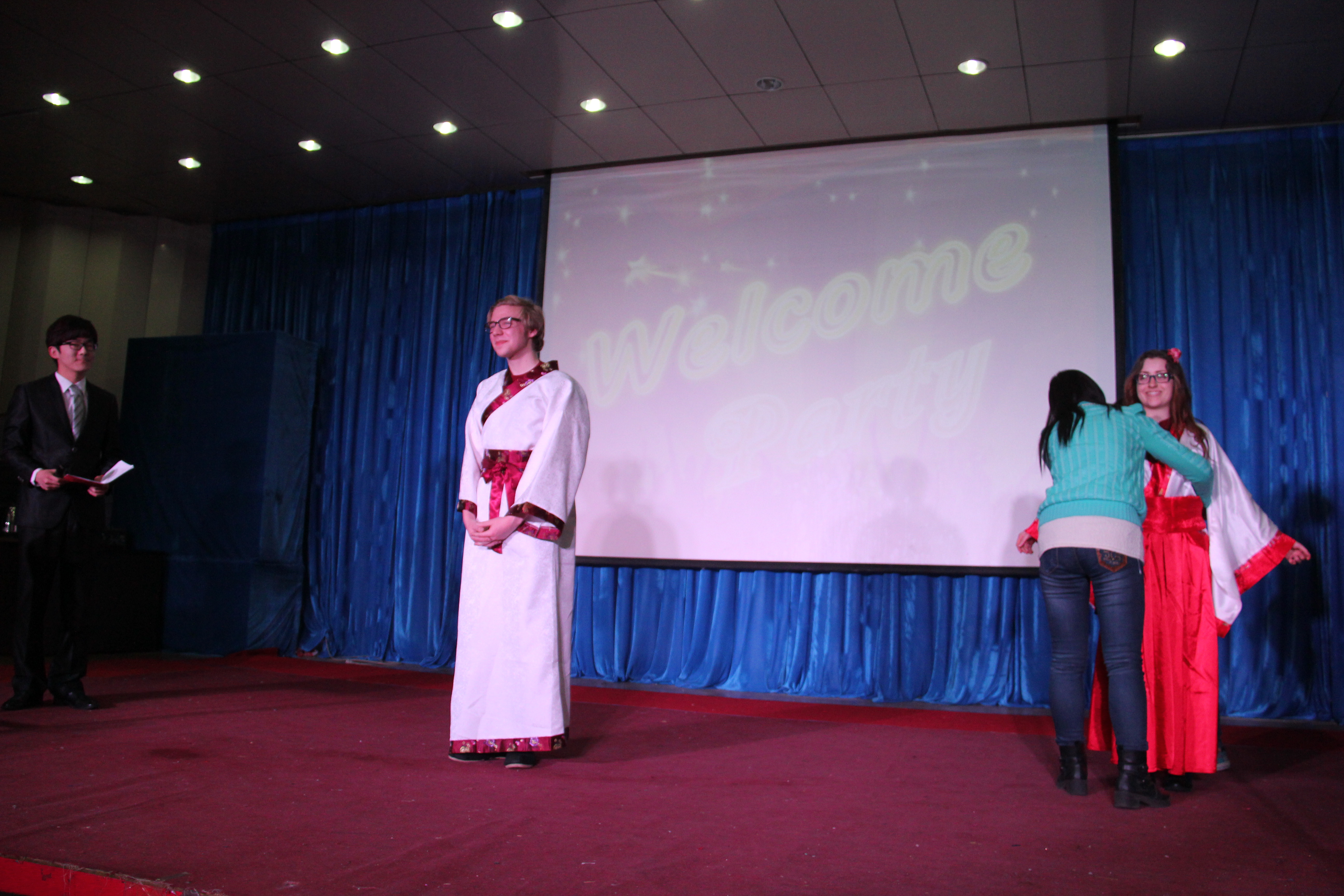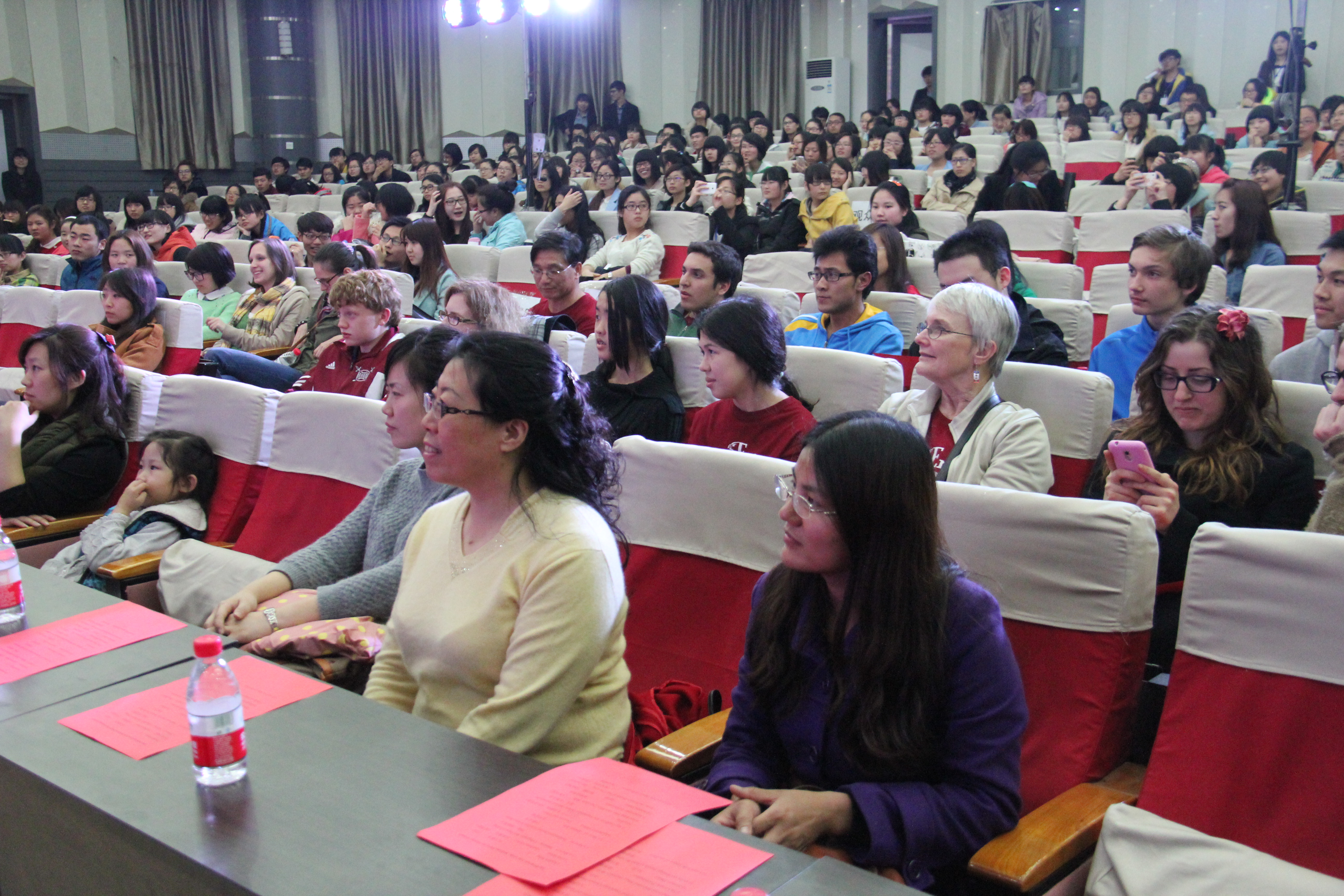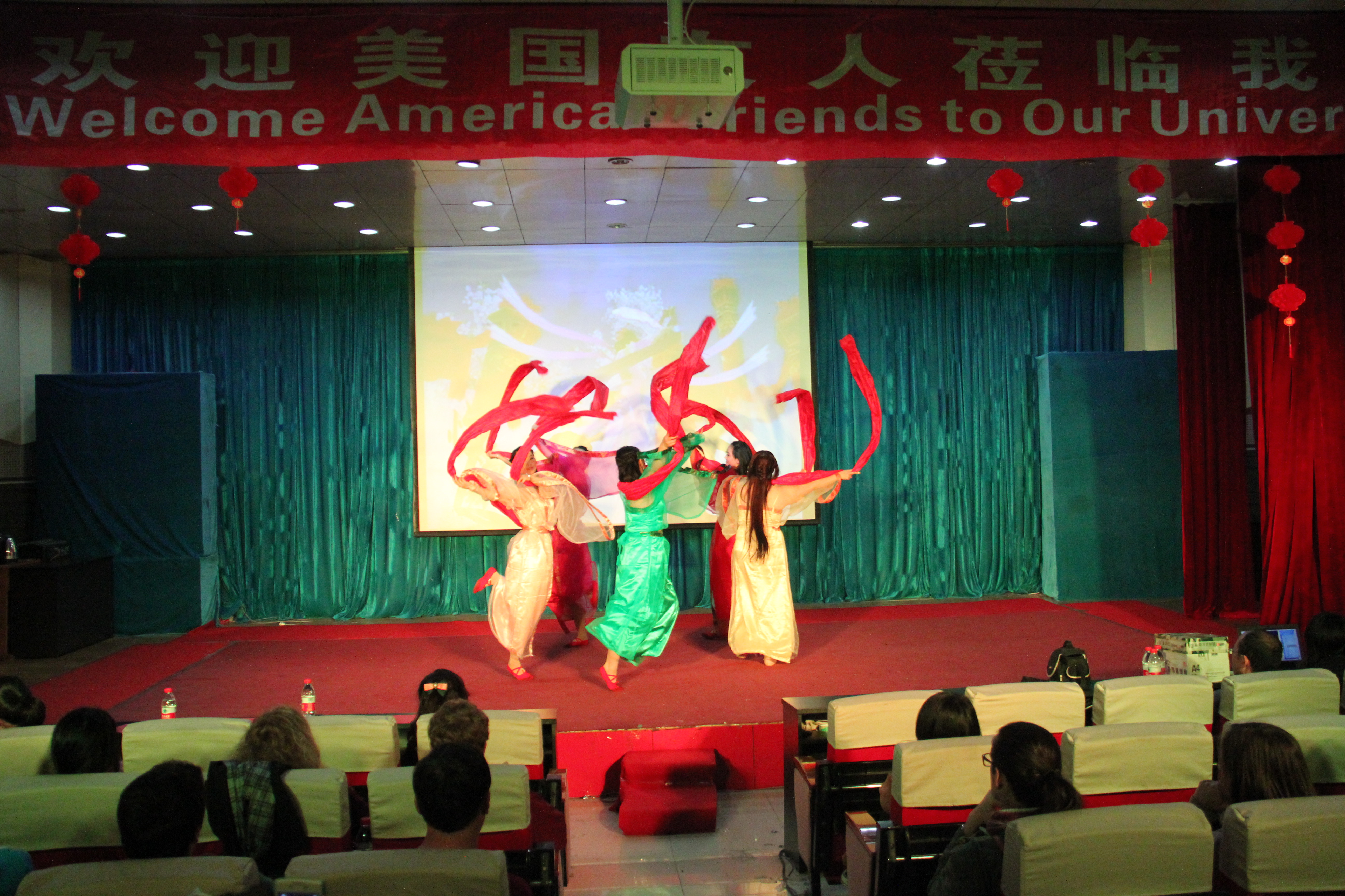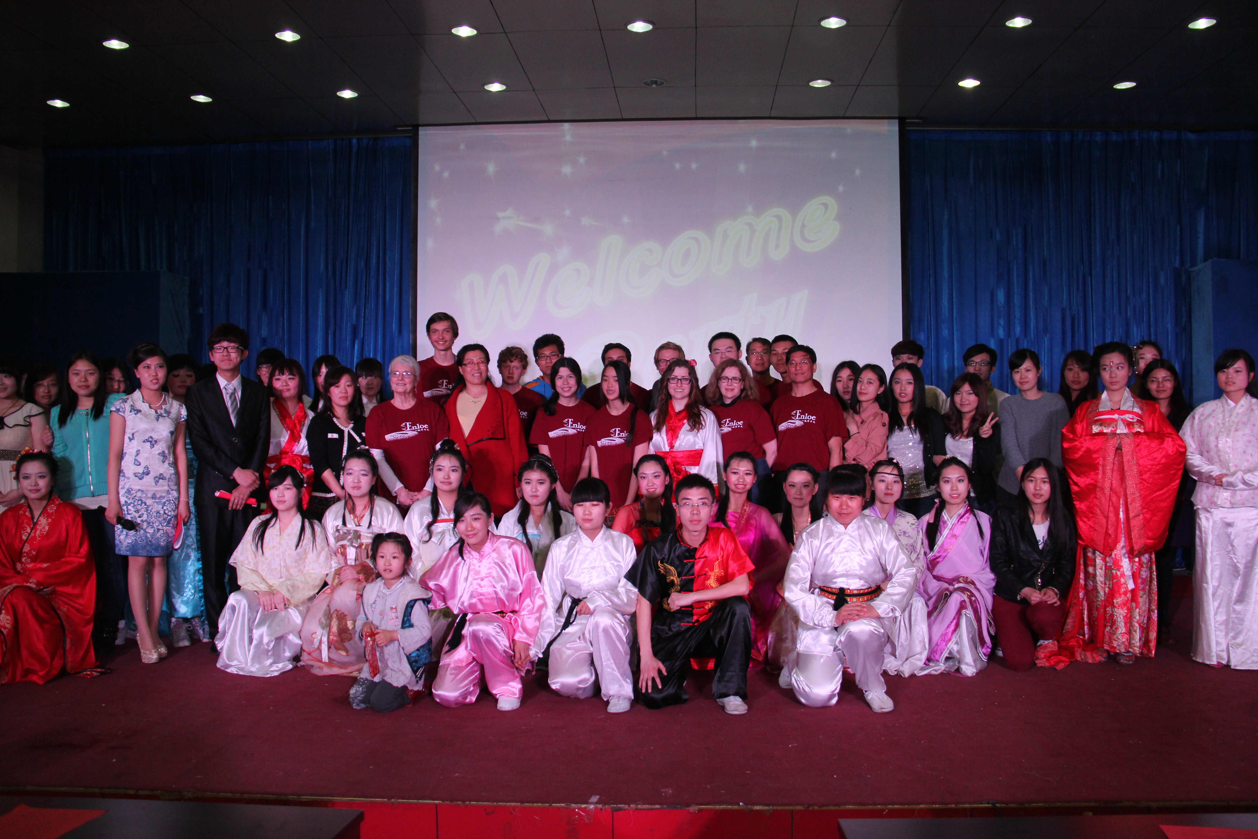 2014年3月28晚7点30分,BEAT365英国官网BEAT365英国官网在综合楼学术报告厅举办了主题为“欢迎美国友人”的晚会。来自美国Enloe高中的14名师生、BEAT365英国官网院长邵丽君、国际交流处郁洋老师及BEAT365英国官网的同学们一起观看了本次晚会。