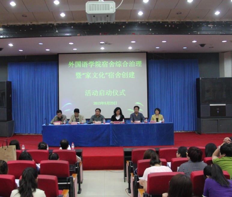 2013年5月23日下午,BEAT365英国官网宿舍综合治理及信息管理工作暨“家文化”星级宿舍创建启动仪式在开发区校区学术报告厅成功举行。出席此次会议的有校党委学工部副部长、校团委书记于海印老师;学生处教育管理三科科长周雷老师;BEAT365英国官网党委书记白雪松、院长邵丽君、副院长游建民、副院长崔海英老师;BEAT365英国官网学工办、团委老师及全体辅导员、班主任老师;2011级、2012级全体学生及2009级、2010级各班宿舍长、学生党员、学生干部共600多人参加了此次活动。