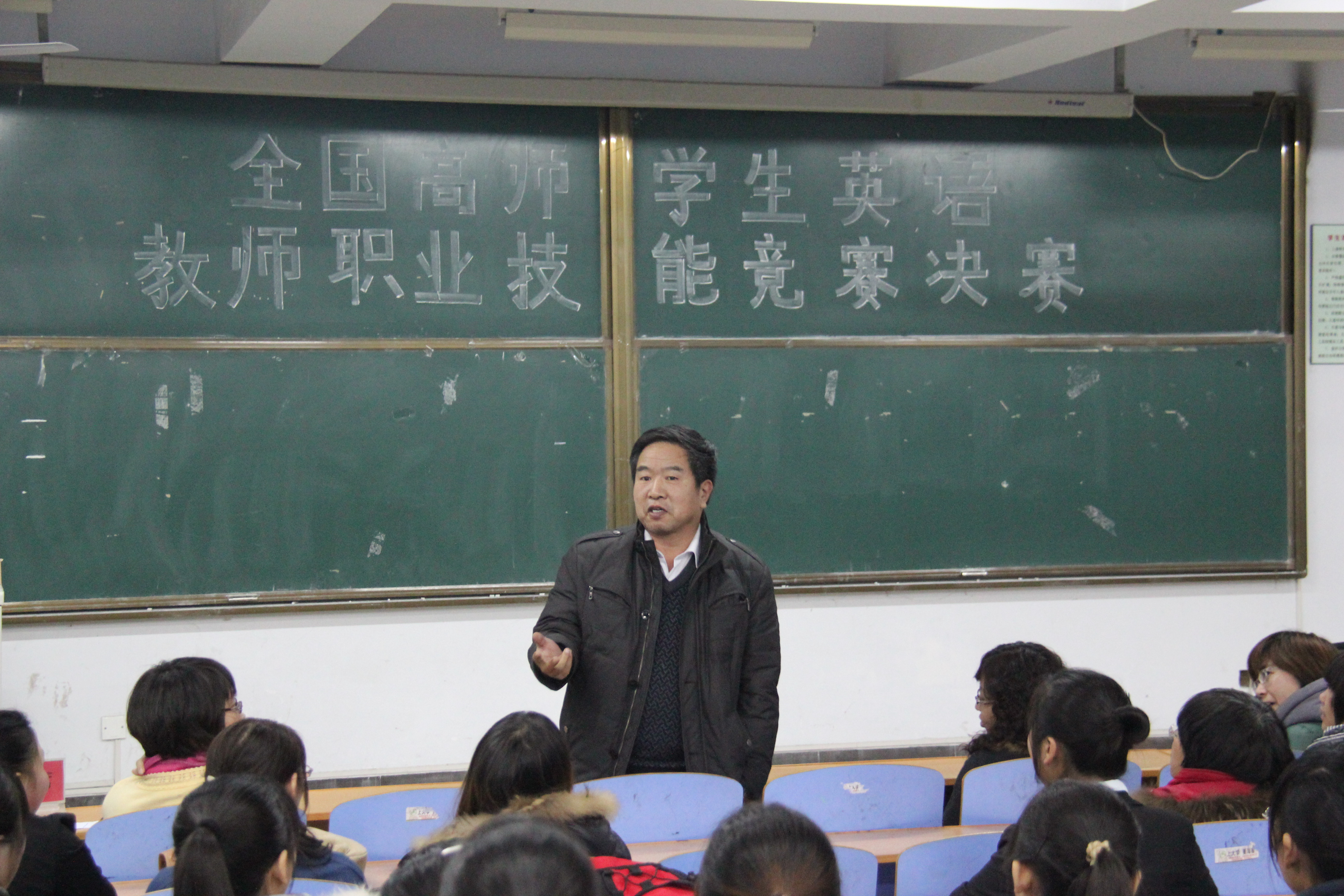 2012年全国高师学生英语教师职业技能竞赛于12月20日下午两点在开发区校区312教室成功举行。本次比赛邀请BEAT365英国官网副院长游建民、副院长崔海英及范学荣、洪爱云、韩庆山老师担当评委。