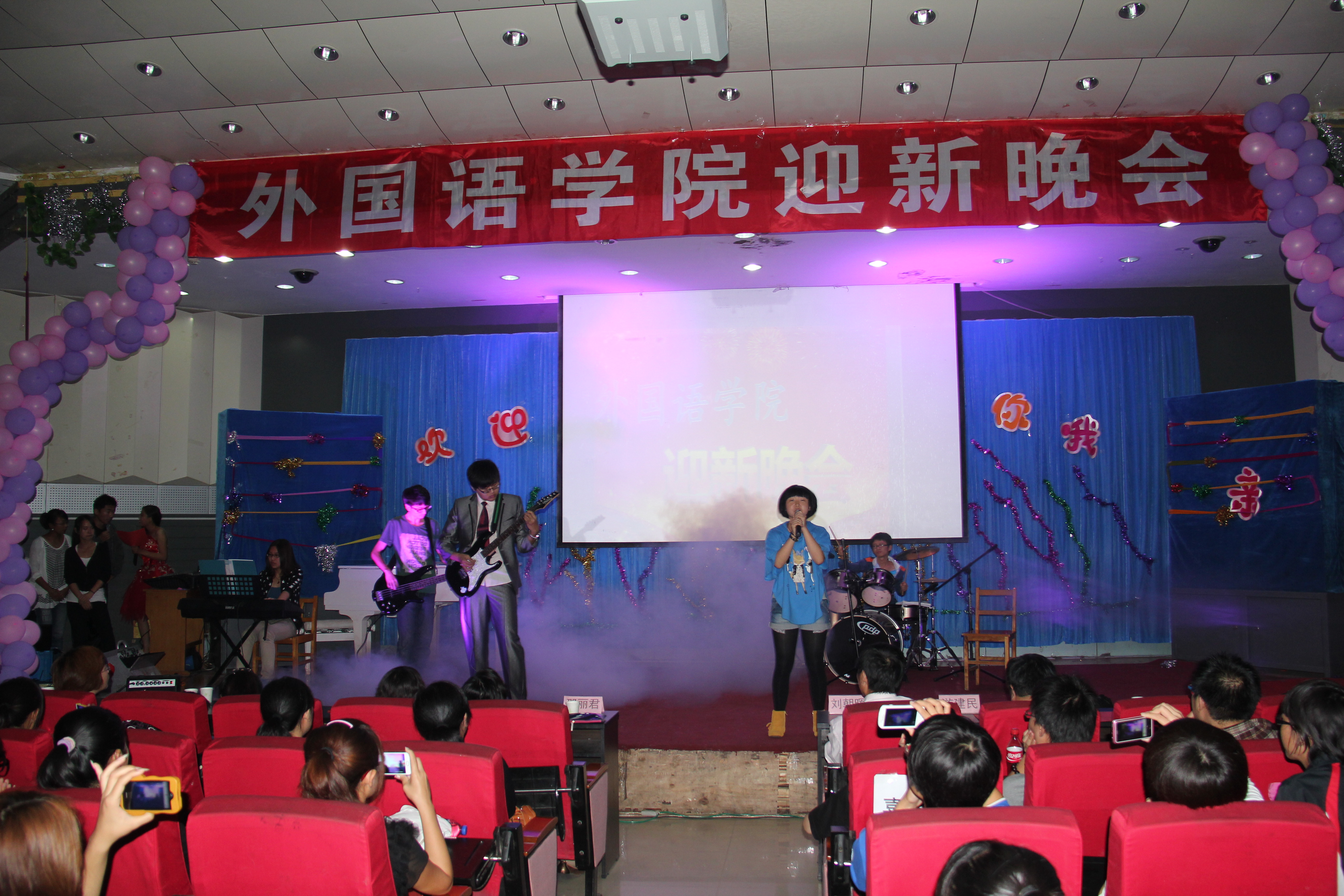 梦想洋溢奏响青春美妙乐章,豪情满怀迎接大学美好生活。2012年9月26日晚7点,开发区校区二楼学术报告厅里座无虚席,BEAT365英国官网隆重举行2012级迎新晚会,院党委书记刘朝辉、院长邵丽君、副院长游建民、副院长崔海英、专业教师、辅导员亲临现场,同全体12级新生一同观看演出。