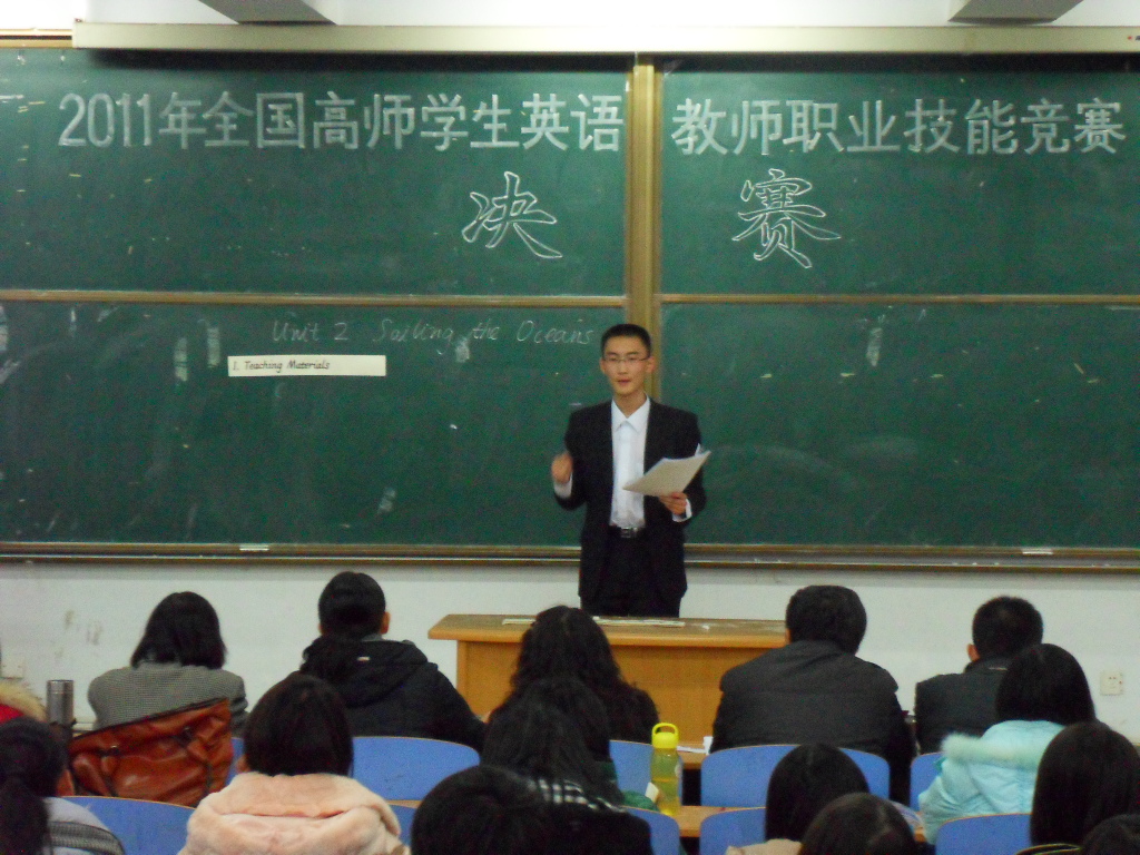 2011年全国高师学生英语教师职业技能竞赛于12月10日下午两点半在开发区312教室成功举行。本次比赛邀请BEAT365英国官网副院长游建民、副院长崔海英及赵建平、王力、韩庆山老师担当评委。比赛分两个环节,共13位选手进入到决赛。所有选手在遵循公平、公正原则的基础上抽签决定参赛顺序,并随机抽取题目参加比赛。各位选手用流利的英语、丰富的肢体语言及多种多样的讲课方式展现了她们的英语运用能力和临场应变能力,赢得了阵阵掌声,台下同学也积极配合,气氛十分活跃。认真负责的五位评委老师公正客观地为各位选手打分,并做了精彩点评,使各位选手和现场观众都受益匪浅。本次活动的成功举办为选手们提供了展示自我风采的平台和锻炼提升的机会。附比赛结果: