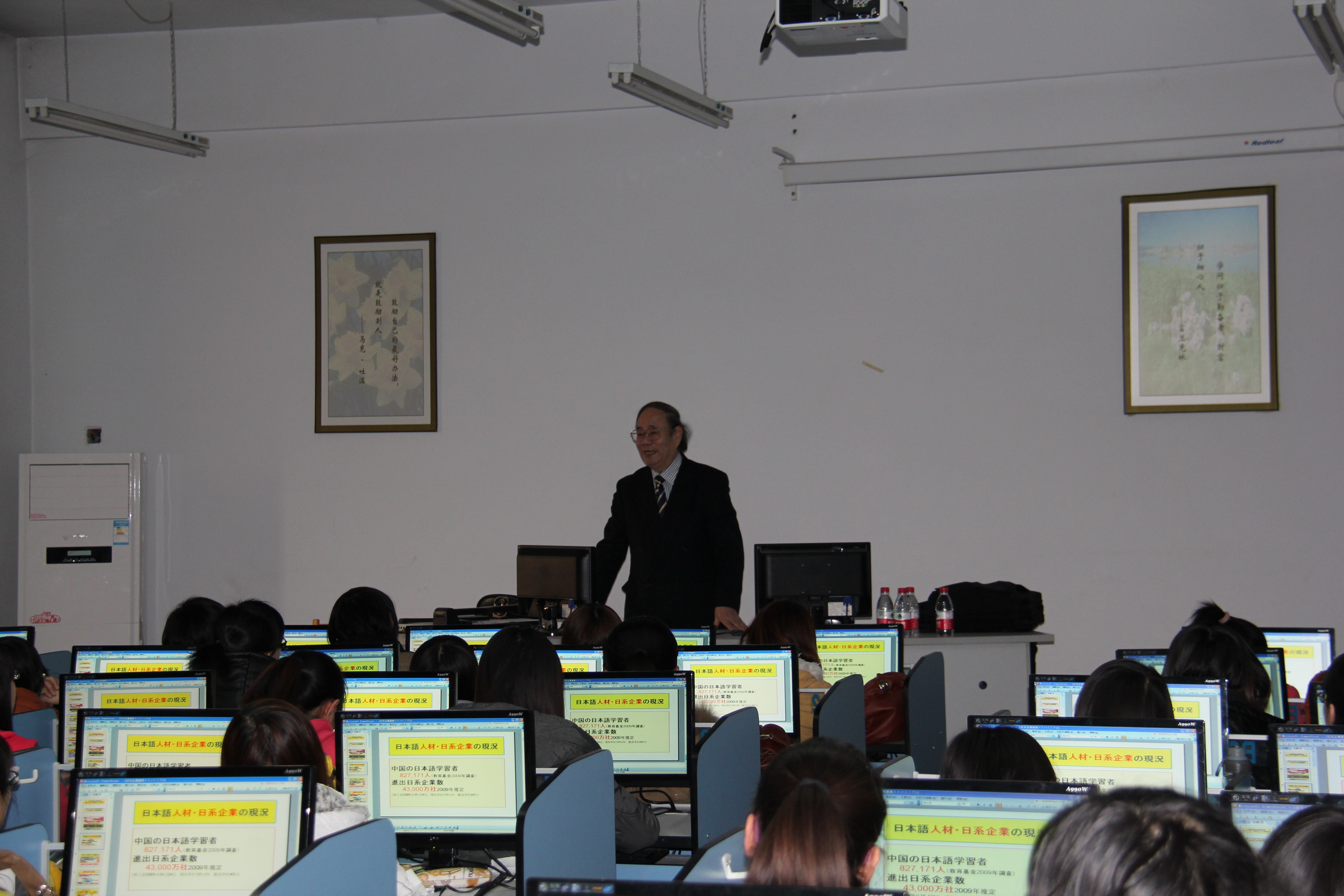 2012年3月12日,日中友好人才育成振兴机构理事长山口隆道先生在BEAT365英国官网开发区校区综合楼316教室为应用日语专业学生进行日语讲座。讲座主要内容是日语专业学生就业现状以及就业面试时应注意的各种事项。讲座中,山口先生通过设定面试场景,让学生进行就业面试模拟训练,使学生身临其境,进行实战练习,受益匪浅。该讲座将为日语专业学生就业问题的顺利开展起到极大促进作用。(日语教学部 王丽丽)