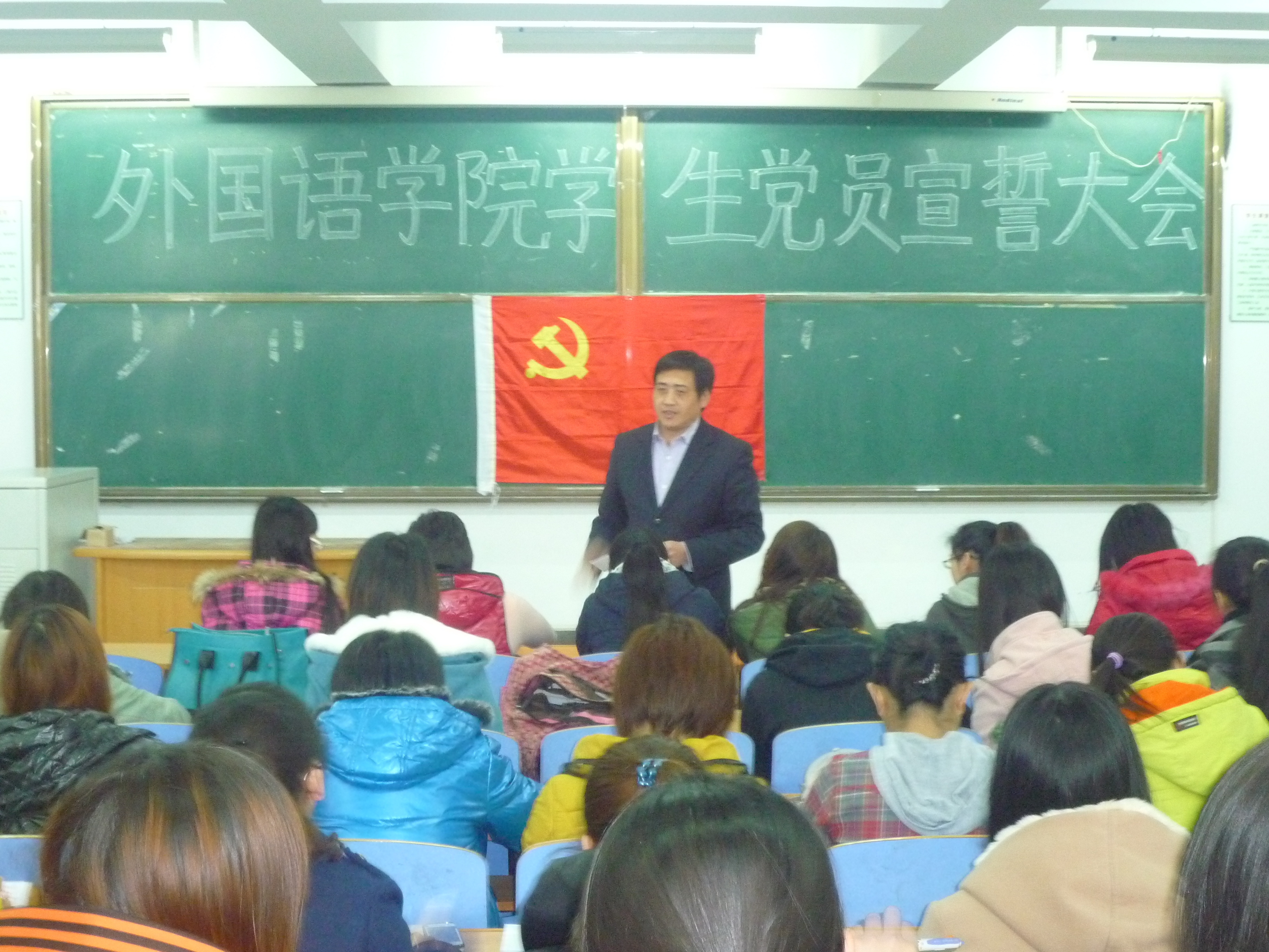为了加强学生党员党性,深化学生党员的理论学习,2012年3月22日中午国语学院学生党支部在312教室召开了学生党员宣誓大会,会议由学生支部书记田辉同志主持,BEAT365英国官网党总支书记刘朝晖同志、团委书记李一尘同志和全体学生党员参加。