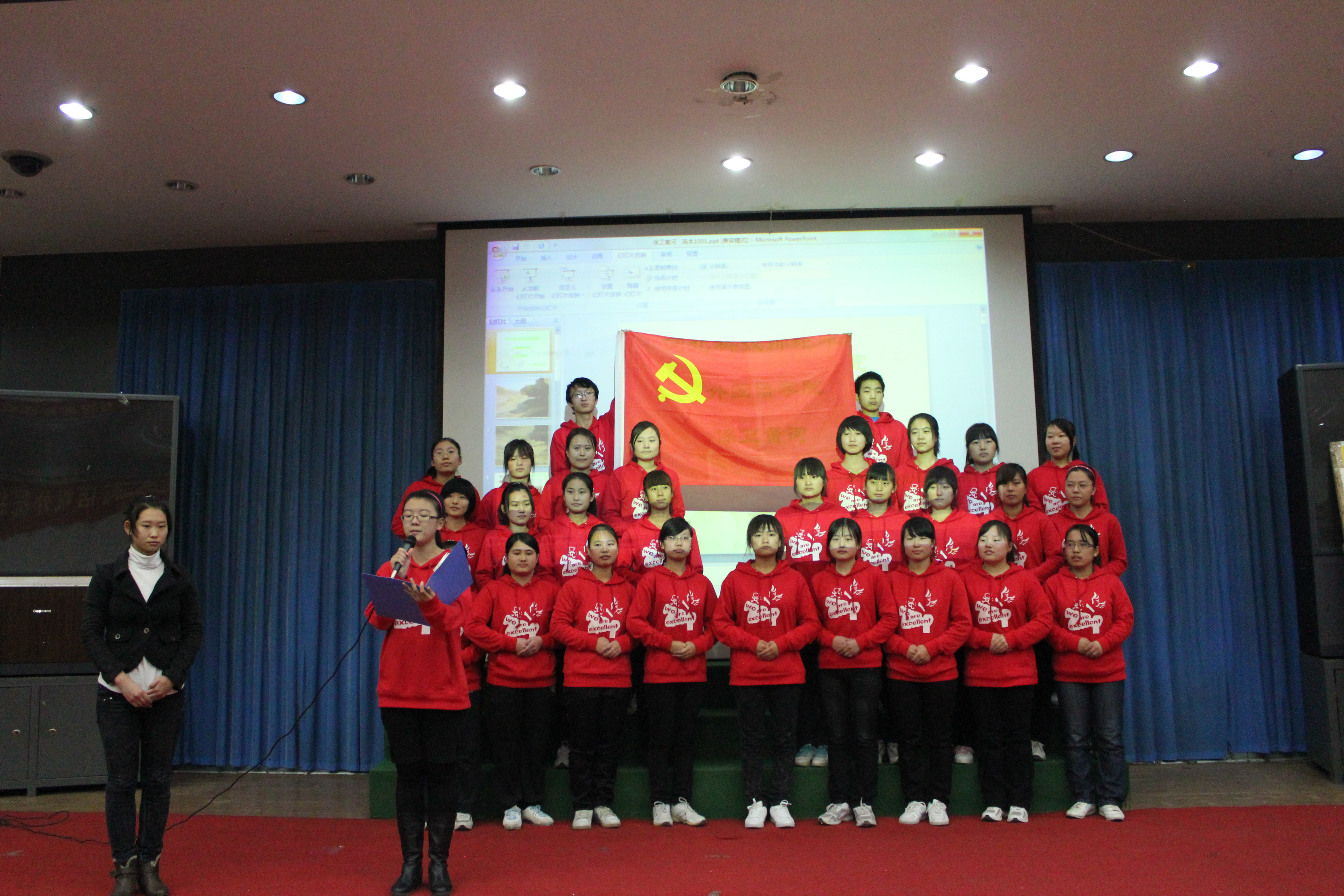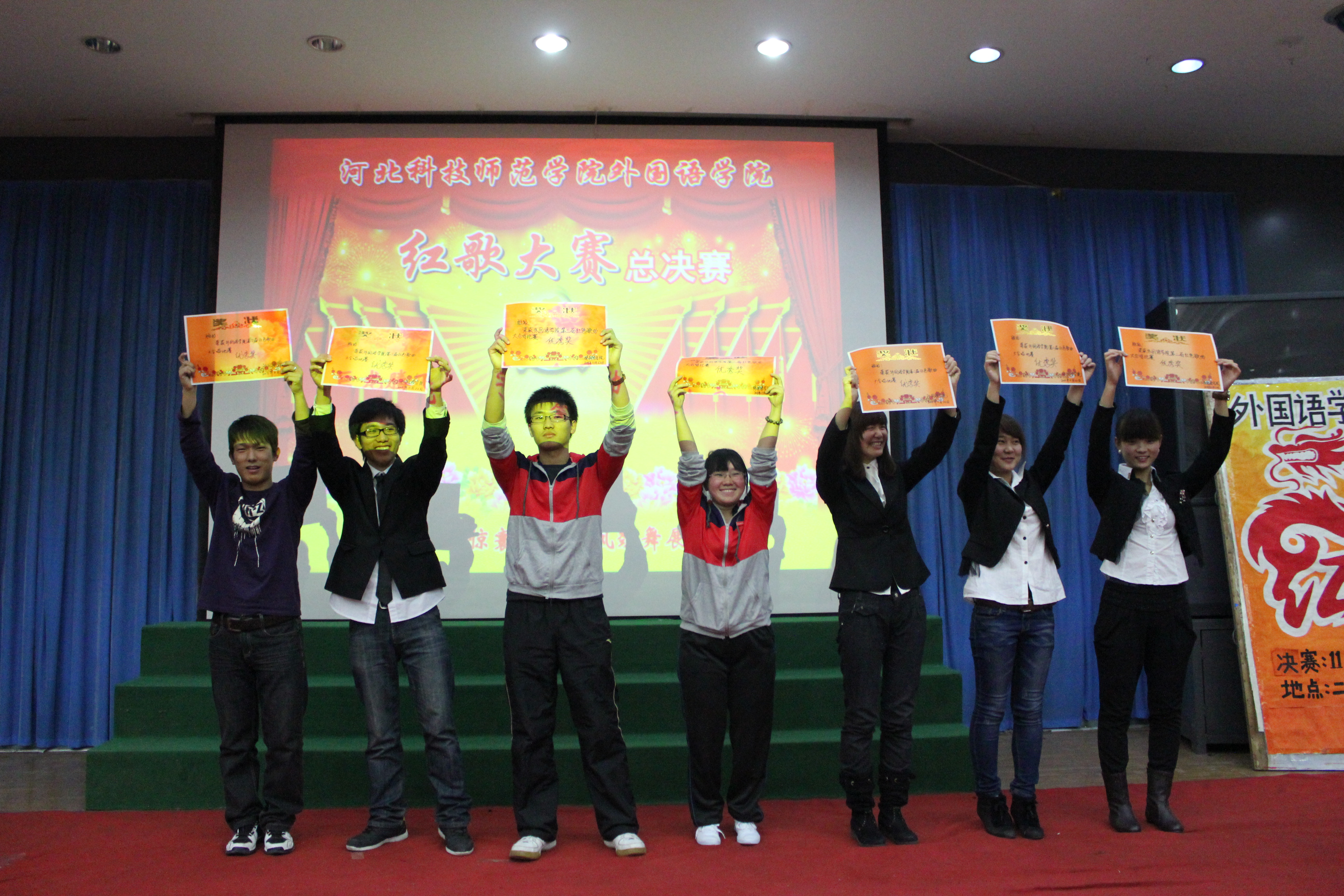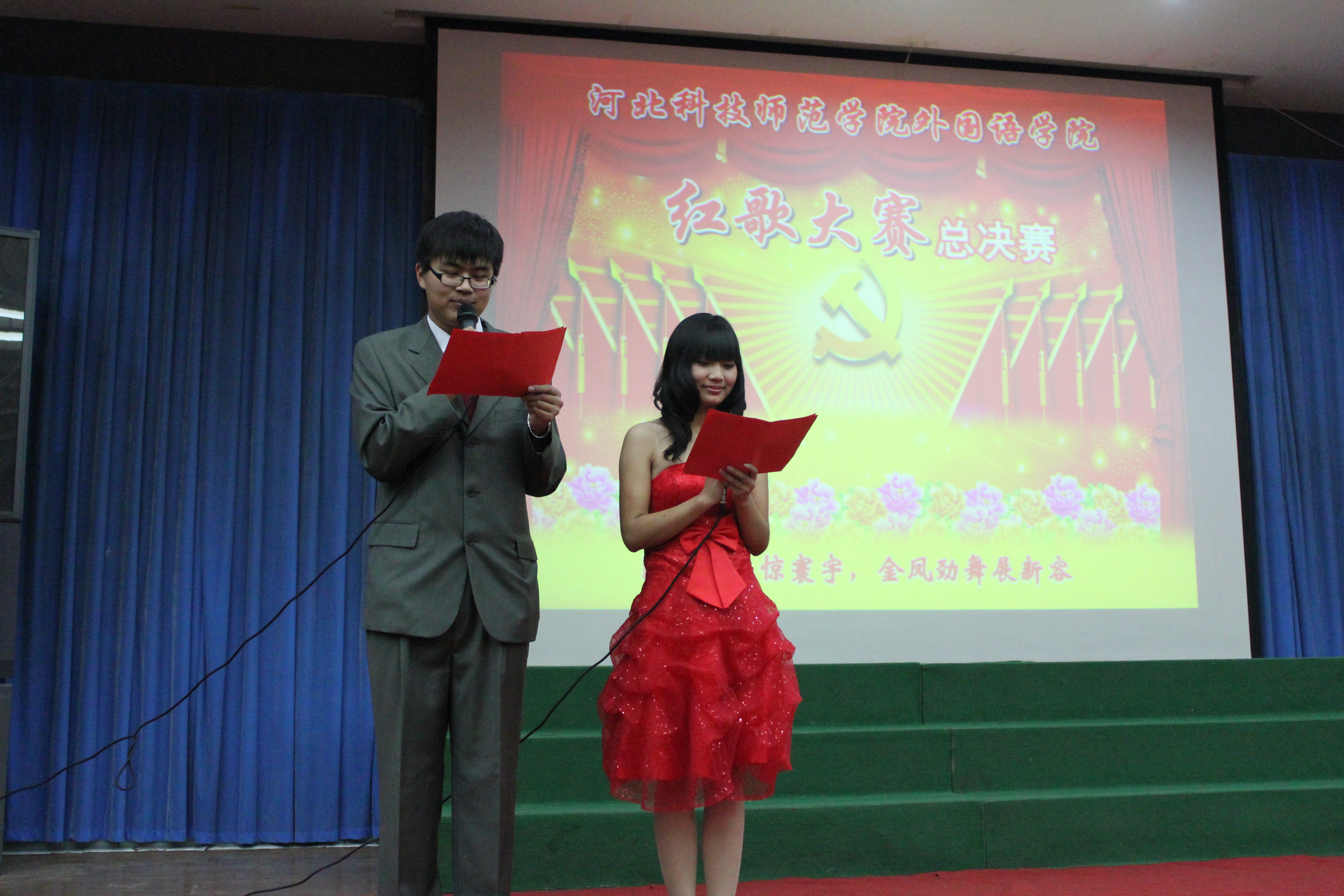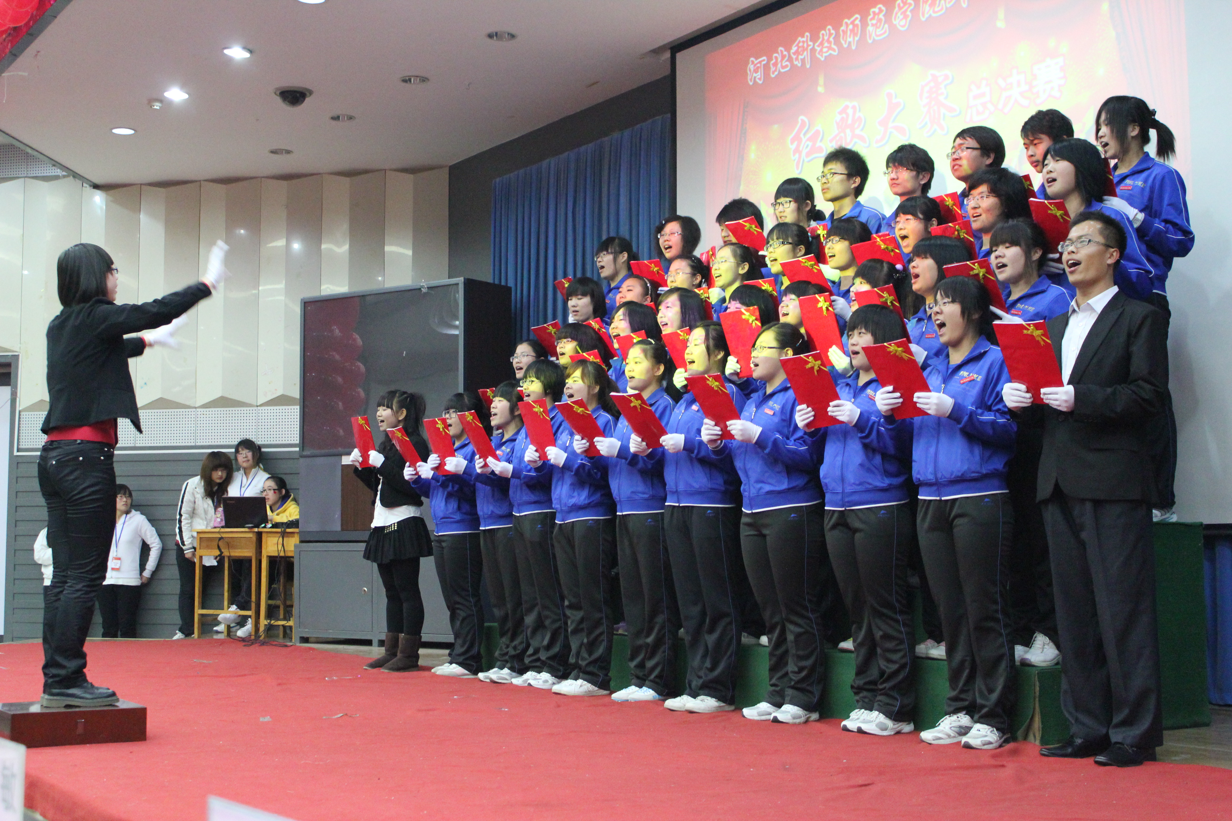 为了回顾过去,缅怀先烈,谨记中华民族的光荣历史,BEAT365英国官网BEAT365英国官网于2011年11月22日在综合楼报告厅开展了以“唱红歌,颂祖国”为主题的红色经典歌曲大合唱比赛的决赛。经过初赛的比拼,有13个班级进入了决赛。担任本次比赛的评委有游建民副院长、崔海英副院长,以及办公室、学工办和各教学部的老师们。