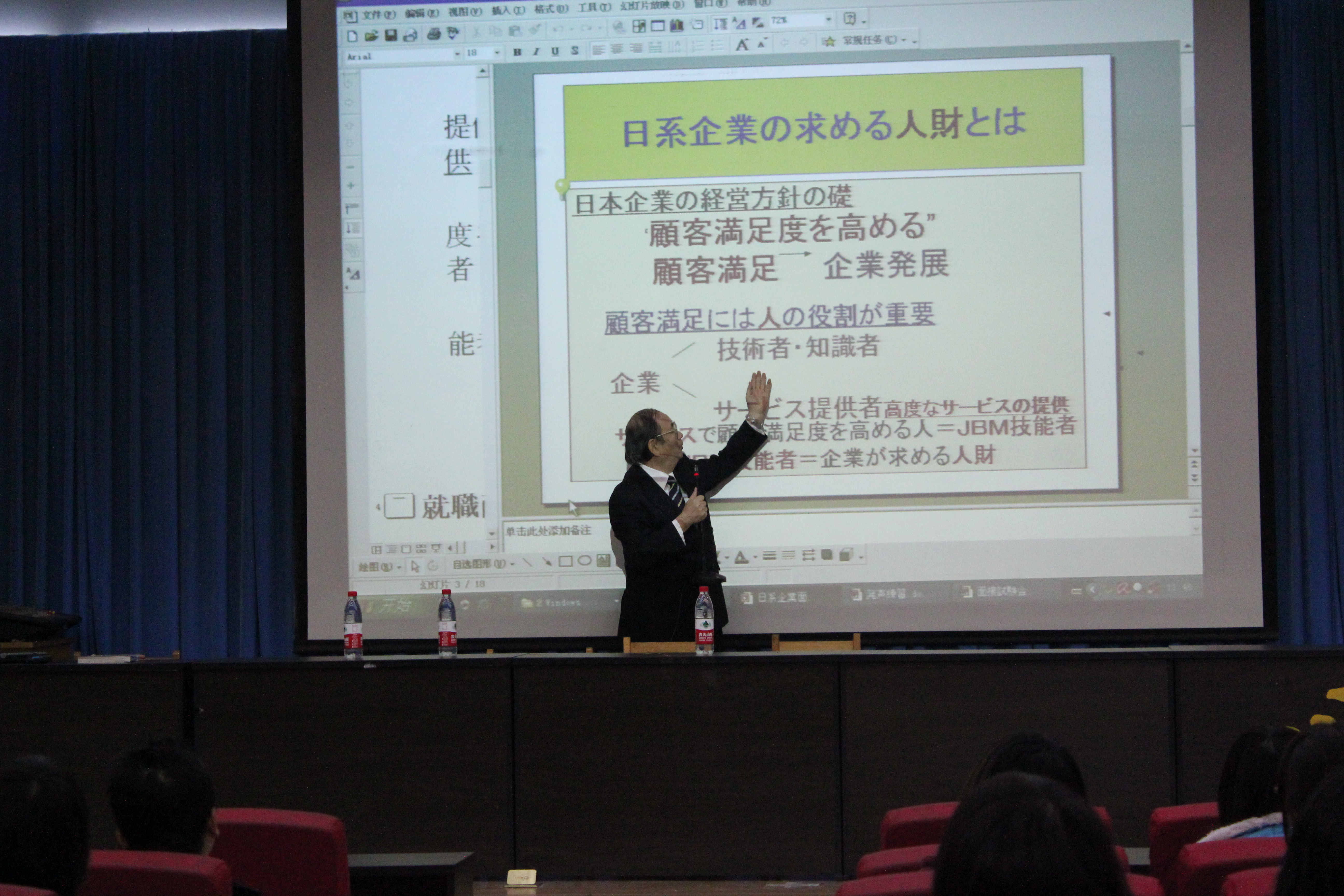3月15日,经由BEAT365日语教学部主任崔基元老师引荐,应BEAT365英国官网邀请,日本专家山口隆道先生一行来BEAT365讲学。山口隆道先生有着丰富的讲学经历,曾在国内70余所高校讲学,对中国学生尤其是日语专业的学生有着深入的了解,同时对日本的在华企业也有清楚的认识。此次讲座就是围绕着日语专业的学生如何进入日企工作及日企的文化方面展开的。山口先生首先介绍了日企所需人才的特点,让同学们对自己有一个清楚的认识。然后以PPT和视频的方式向大家介绍了一些在日企工作需要学习的礼仪和注意事项。经过此次讲座,日语专业的学生对日语学习有了更清晰的方向也对未来充满了信心。
