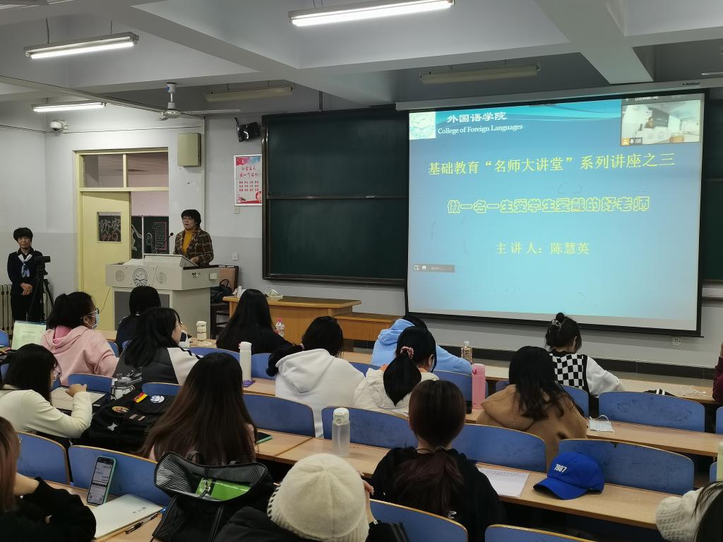 2021年11月18日下午,BEAT365英国官网在综合楼312召开了英语专业2020级教育见习师德与教师角色专题讲座,此次讲座是BEAT365“名师大讲堂”的系列讲座之三。特邀主讲人为秦皇岛市海港区教体局高级教师陈慧英老师,陈老师是英语专业2020级的校外导师,河北省中小学省级培训专家团队成员、秦皇岛市首批学科带头人。