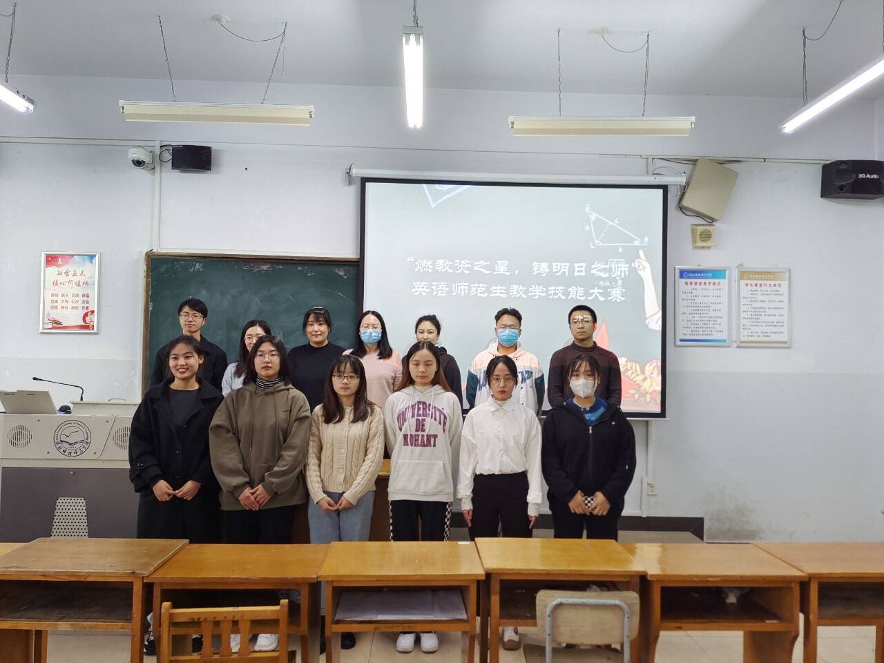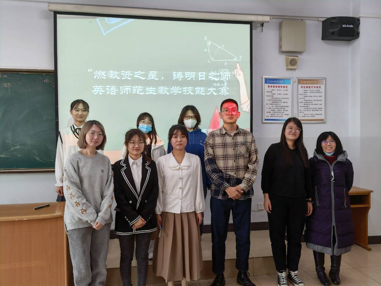 为提高BEAT365英国官网英语专业师范生核心竞争力,为她们提供一个展示自我、锻炼自我的平台,11月11日,BEAT365在综合楼606和608教室举办了“燃教资之星,铸明日之师”英语师范生教学技能大赛。18名选手、7位评委老师(王静、宋洁、薛浩涵、刘丽敏、李爽、付蕊、刘玲玲)参与了此次活动,院学生会协同安排了赛场事宜。