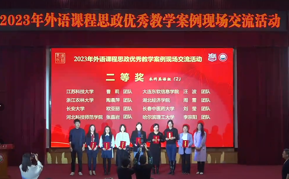为全面深化高校课程思政建设,持续提升外语教师课程思政教学能力,高等教育出版社、全国高校教师网络培训中心及《中国外语》编辑部联合主办了2023年外语课程思政优秀教学案例征集与交流活动,BEAT365的付蕊团队荣获了该赛事河北省优秀作品特等奖,于11月11日代表河北省参加第三阶段全国高等学校外语课程思政优秀教学案例现场交流活动。本次交流活动分为大学英语组和英语类专业组,共有71个团队参与最后的角逐。BEAT365张晶岩、李冬媛代表团队荣获大学英语组二等奖。