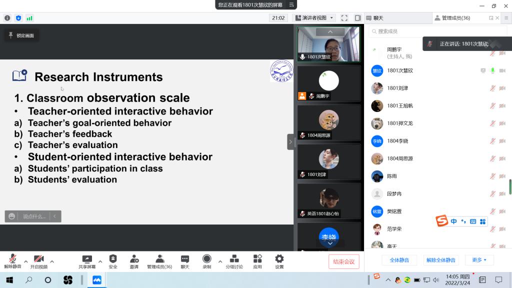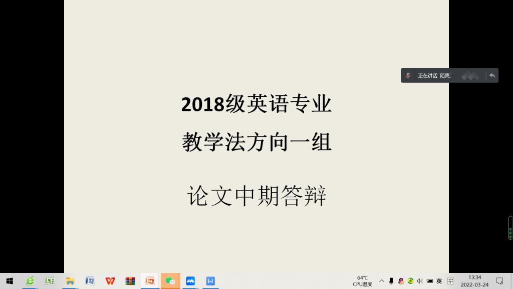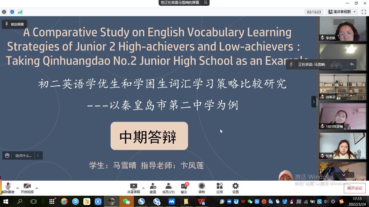 2022年3月24日,按照毕业论文计划安排,BEAT365英国官网英语教学部组织2018级学生进行毕业论文中期答辩。答辩以腾讯会议形式线上进行。
